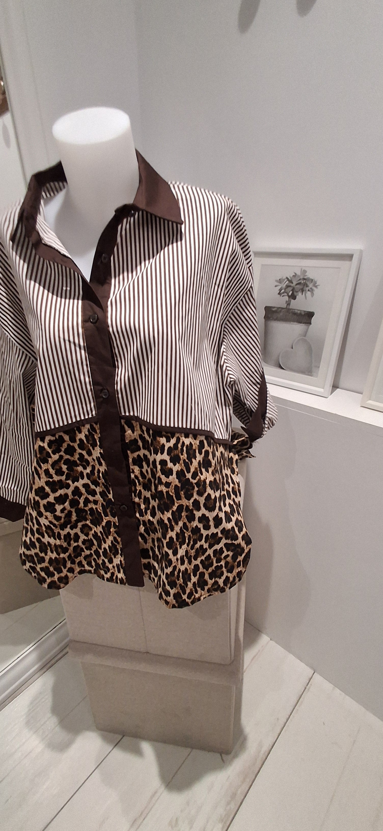 - 2 motifs : rayés marron et blanc + léopard en bas