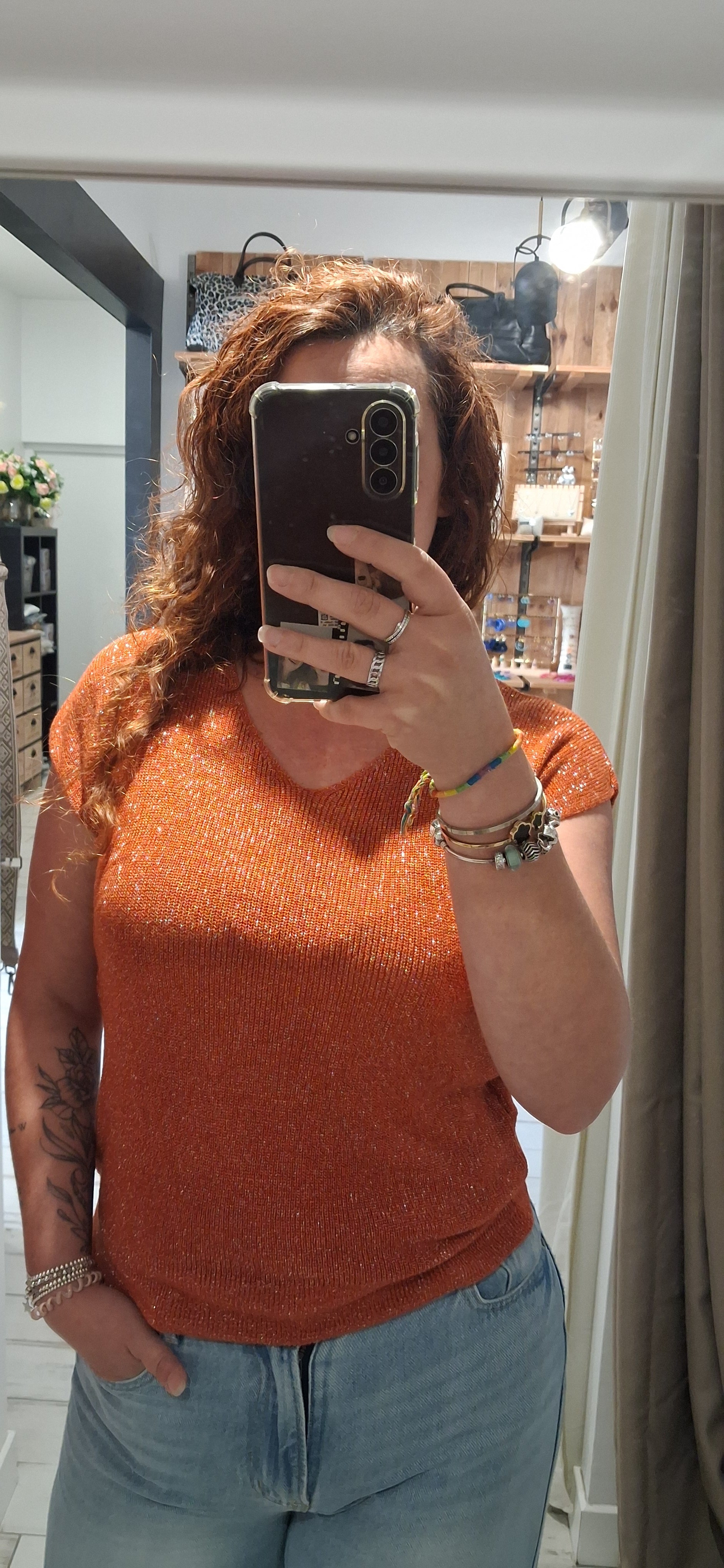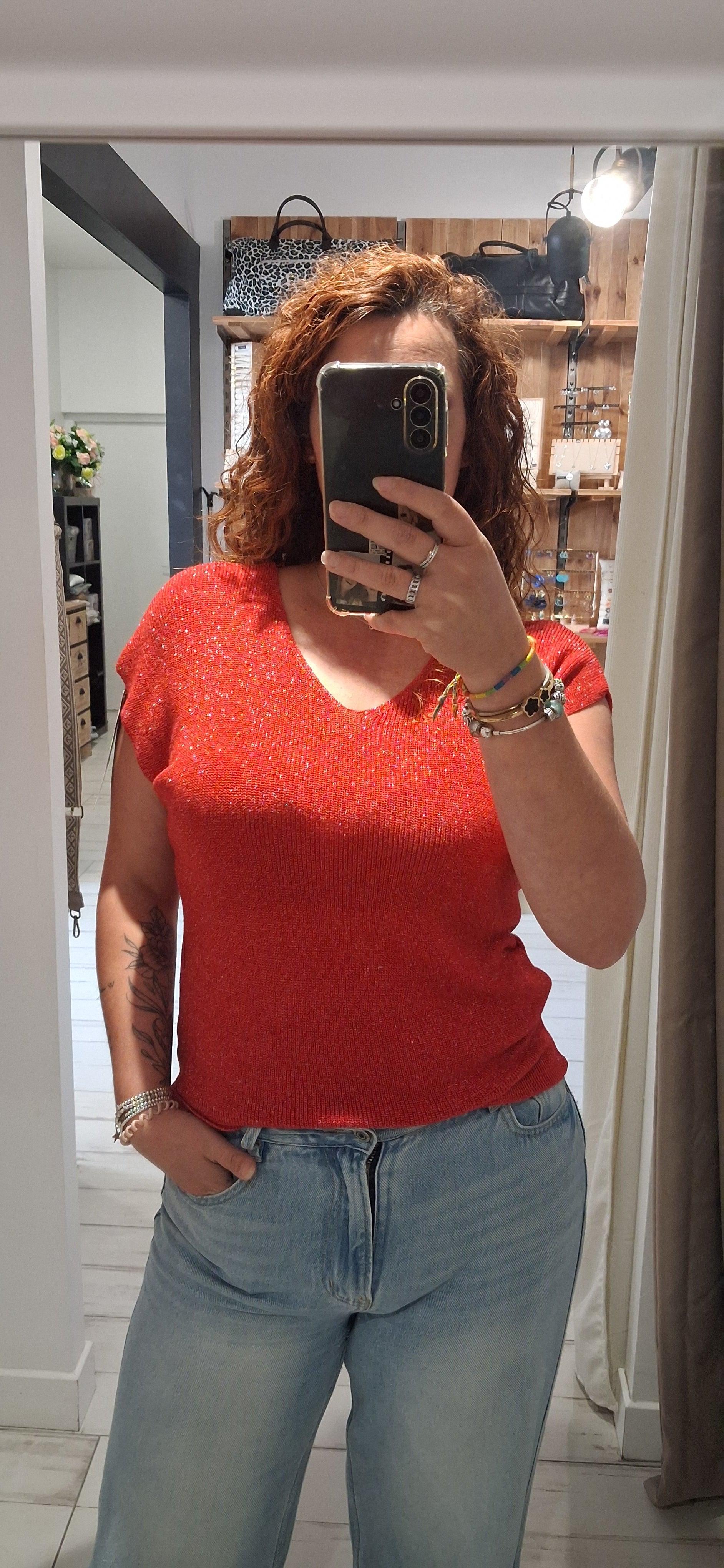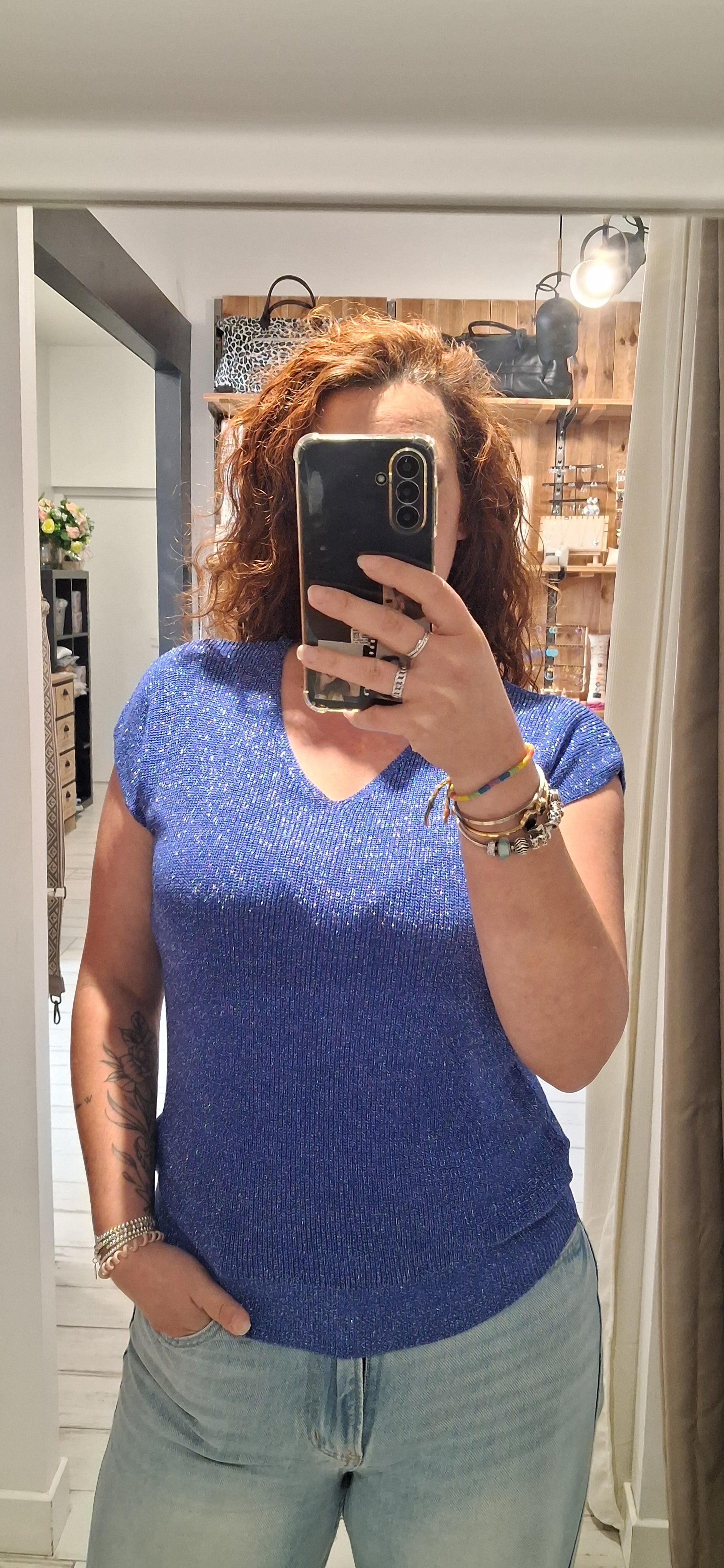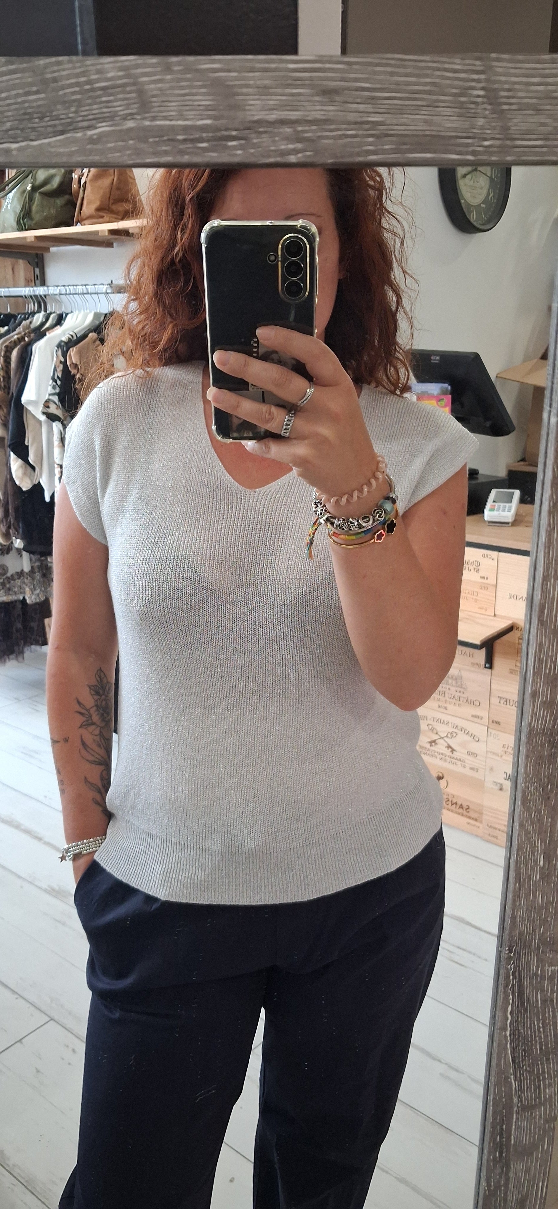 - Top, manches courtes en fine maille
